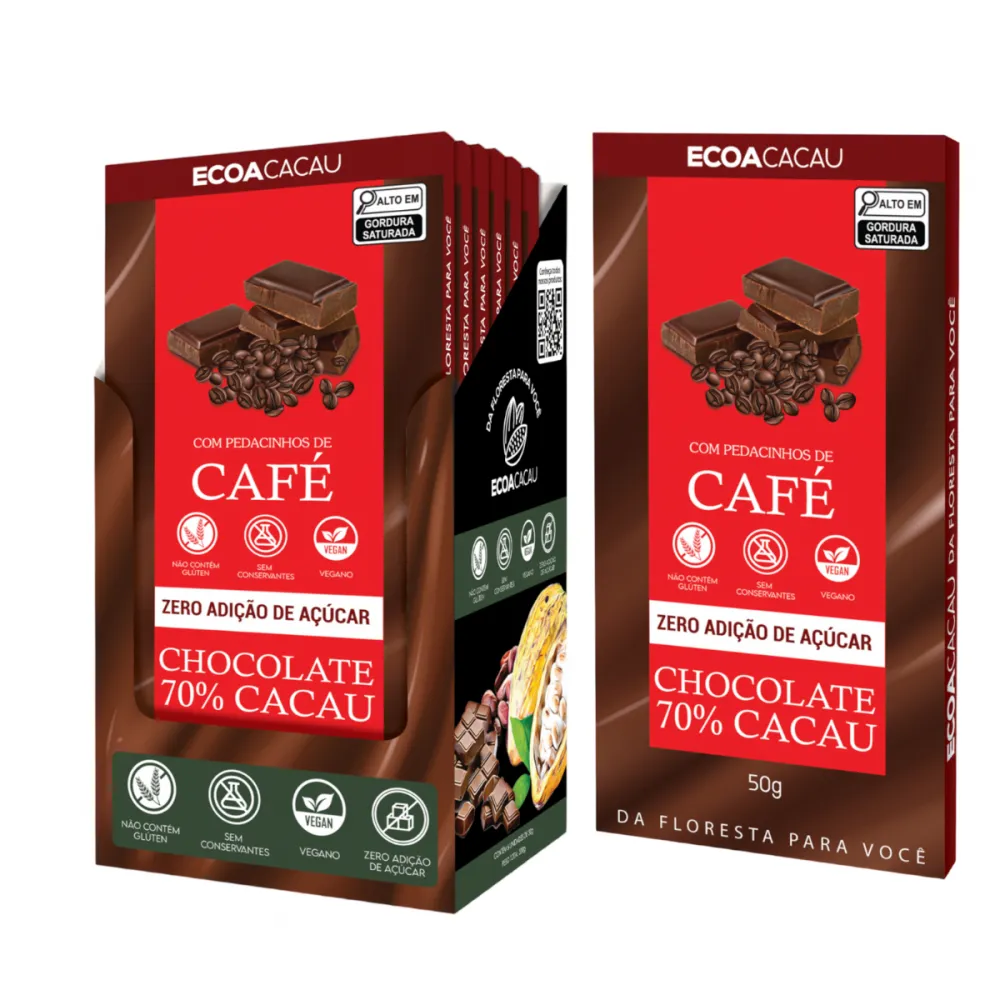 Tablete de Chocolate 70% com pedacinhos de Café -ZERO AÇÚCAR - Display com 6 tabletes